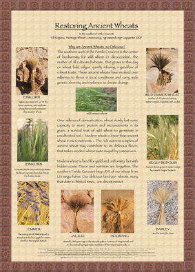 These ancient landrace wheats were discovered in the Masada Fortress by Yigal Yadin, translator of the Dead Sea Scroll, stored 2,000 years ago by King Herod. This is the wheat eaten by ancient Israelis but today are almost extinct. Collected by Nikolai Vavilov in 1926. and collected by Eli Rogosa in Wadi Fukin near Bethlehem